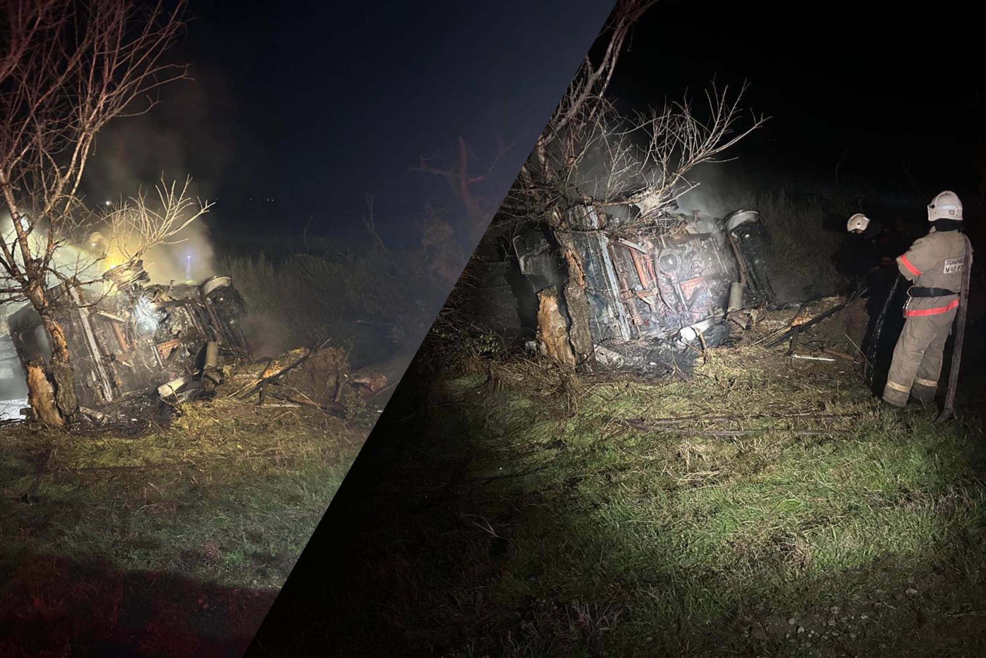 Мерседес вспыхнул после удара о дерево на трассе под Будённовском: водитель погиб в огнеЛичность погибшего пока не установлена